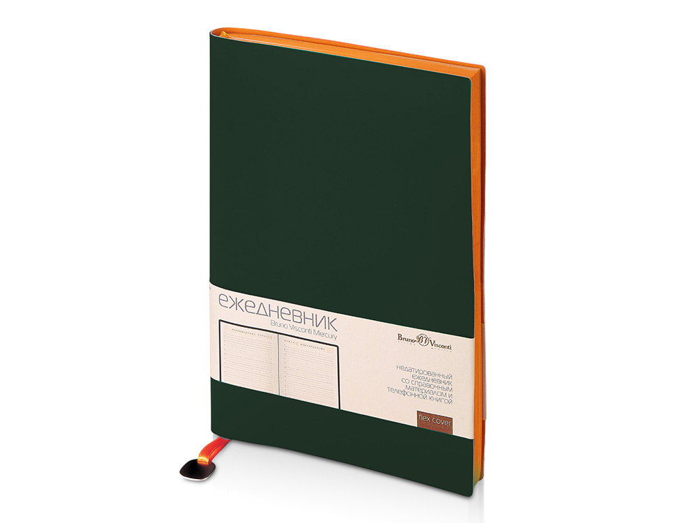 Недатированный ежедневник Mercury от бренда Bruno Visconti - это качественный корпоративный подарок по выгодной цене, произведенный специально под персонализацию. Представлен в современном формате А5. Обложка ежедневника выполнена из современного переплетного материала с двойной закладкой с шильдом. Цветной край блока, а также отделка листов цветными деталями - это переплетение технологических новинок и оригинальных дизайнерских решений.