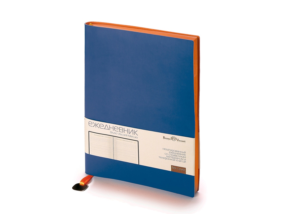 Недатированный ежедневник Mercury от бренда Bruno Visconti - это качественный корпоративный подарок по выгодной цене, произведенный специально под персонализацию. Представлен в современном формате А5. Обложка ежедневника выполнена из современного переплетного материала с двойной закладкой с шильдом. Цветной край блока, а также отделка листов цветными деталями - это переплетение технологических новинок и оригинальных дизайнерских решений.