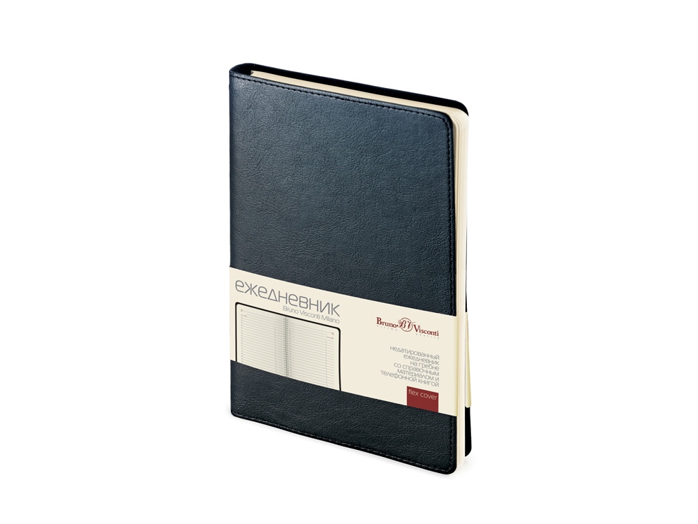 Ежедневник Milano от бренда Bruno Visconti - это сочетание элегантности и практичности. Закругленная обложка из классического переплетного материала - хорошая альтернатива натуральной коже. Форма обложки подчеркнута аккуратной строчкой по краю. Внутренний блок формата А5 на современном креплении – полускрытом гребне – содержит 272 страниц. Для них подобрана первосортная бежевая бумага повышенной плотности (70 г/кв м). Помимо рабочих страниц в структуру блока включены телефонная книга и справочный раздел. На страницах для планирования есть удобная почасовая разбивка.