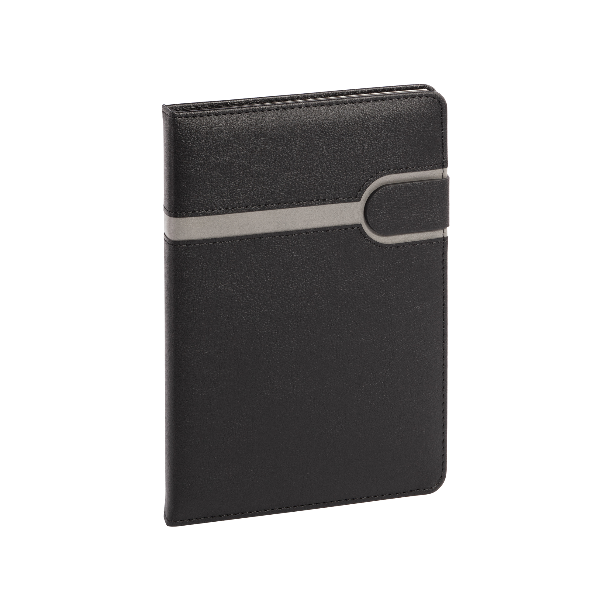 Матовая плотная обложка с выраженной текстурой натуральной кожи дополнена стильным вырезом – полосой серого цвета с прошивкой по периметру. Внутренний блок включает 256 страниц из бумаги плотностью 70 гр., срезом в цвет обложки и закладкой-ляссе, благодаря которой его удобно сразу открывать на нужной странице.