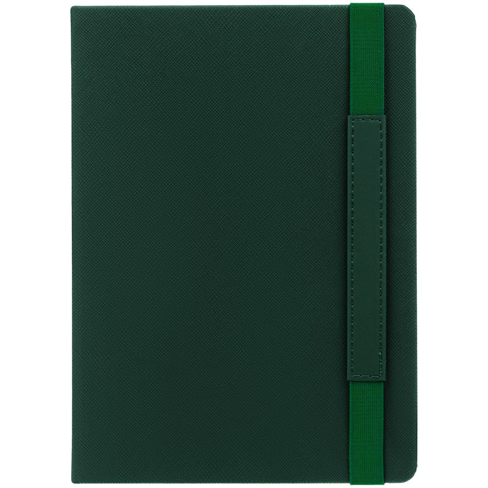 Ежедневник с твердой обложкой, выполнен из материала Nice Touch, голубой JJ, дополнен резинкой с шильдой из материала Soft Touch Ultra и ляссе в цвет обложки.