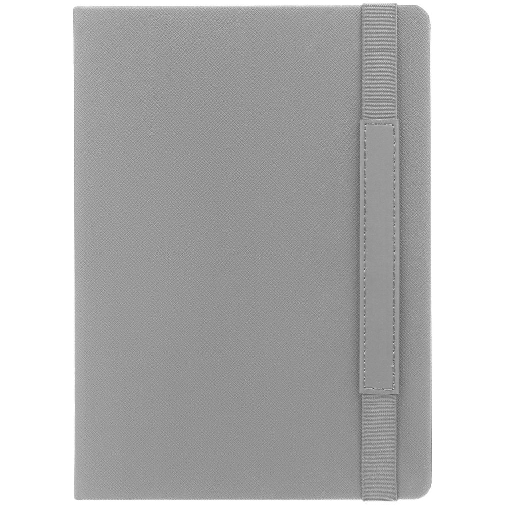 Ежедневник с твердой обложкой, выполнен из материала Nice Touch, голубой JJ, дополнен резинкой с шильдой из материала Soft Touch Ultra и ляссе в цвет обложки.