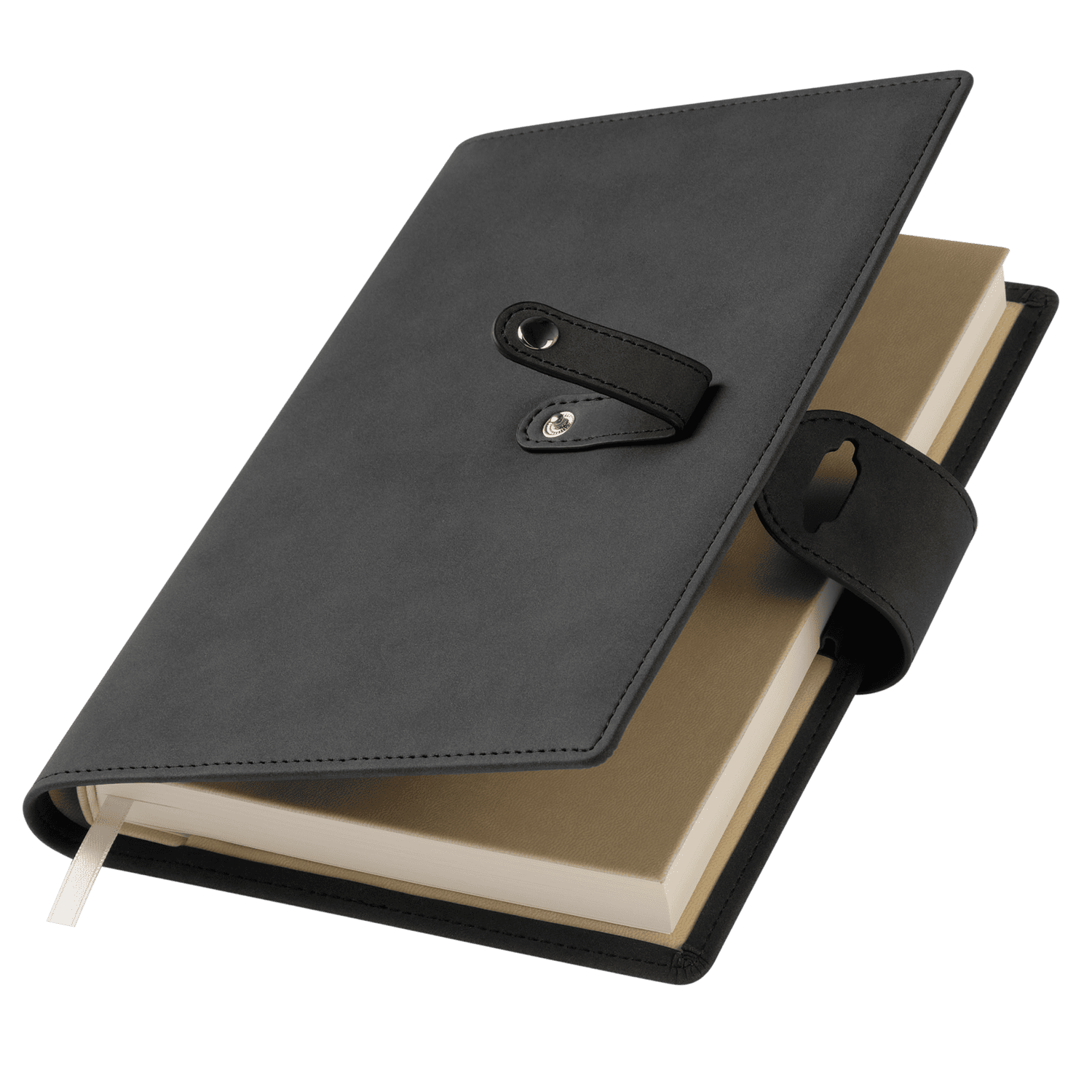 Застежка двойная – состоит из ремешка с металлической кнопкой и декоративной петли из материала обложки