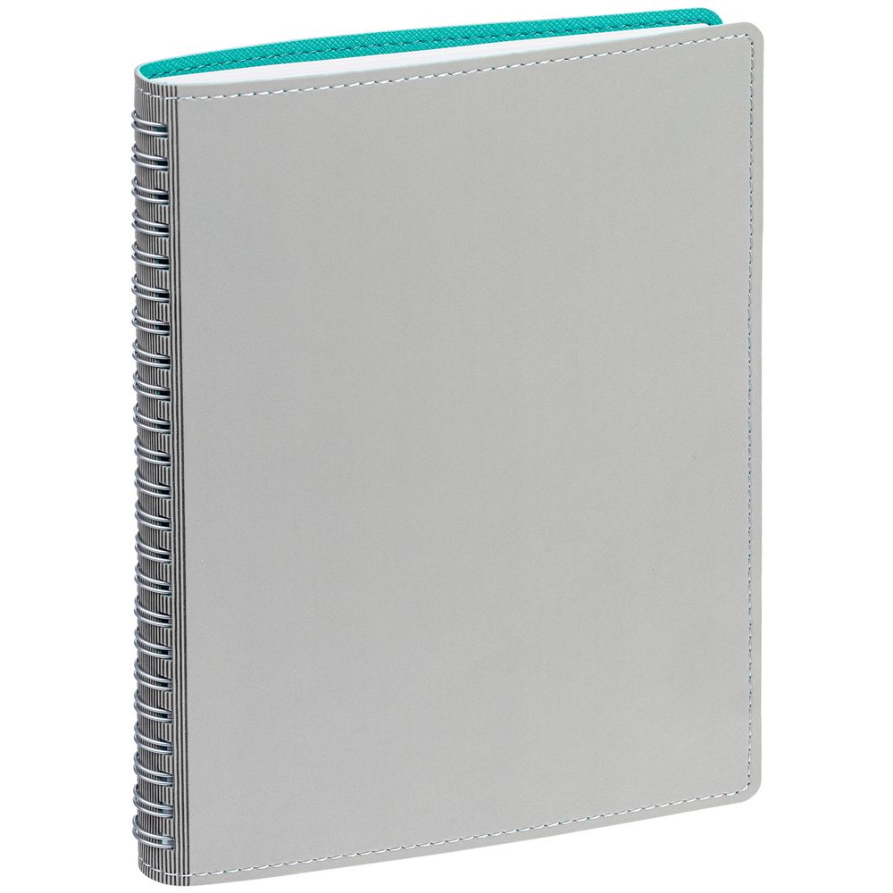 Ежедневник с гибкой обложкой, выполнен из материалов Soft Touch, цвет морской волны II и Nice touch, серый СС.