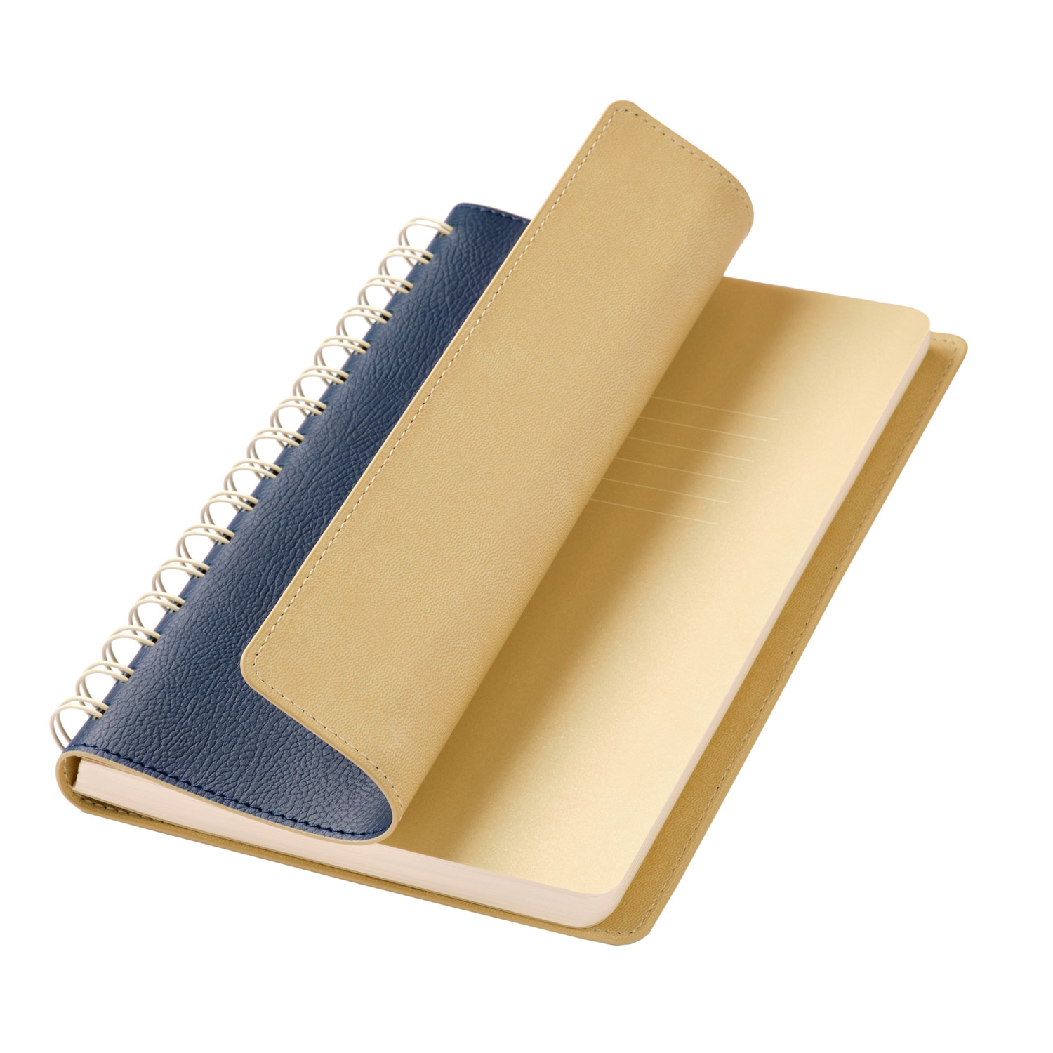 Внутренний блок с кремовыми страницами и срезом гармонично сочетается с нежным оттенком форзаца и нахзаца, повторяющим цвет внутреннего материала обложки. Надежная полускрытая пружина обеспечивает удобство использования и долговечность.