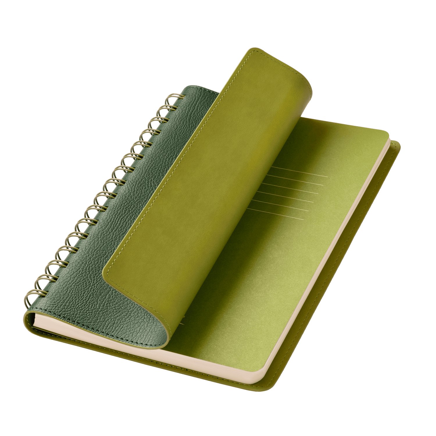 Внутренний блок с кремовыми страницами и срезом гармонично сочетается с нежным оттенком форзаца и нахзаца, повторяющим цвет внутреннего материала обложки. Надежная полускрытая пружина обеспечивает удобство использования и долговечность.