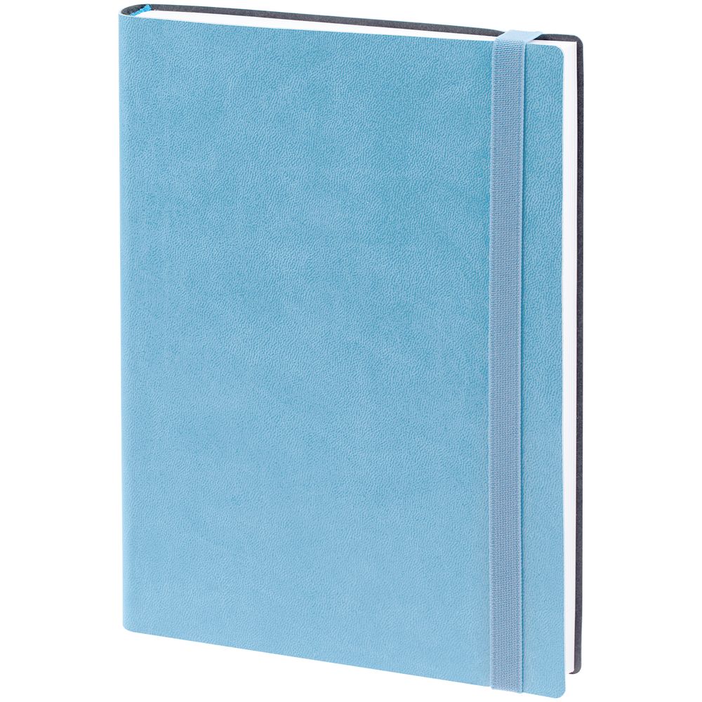 Ежедневник с гибкой обложкой выполнен из материала Latte, морская волна II, и дополнен резинкой шириной 1 см, капталом и ляссе в цвет обложки.
