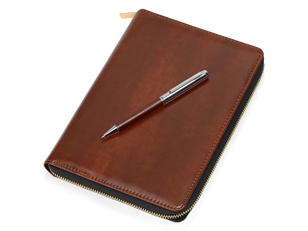 Бизнес-блокнот на молнии А5 Fabrizio с RFID защитой и ручкой, коричневый