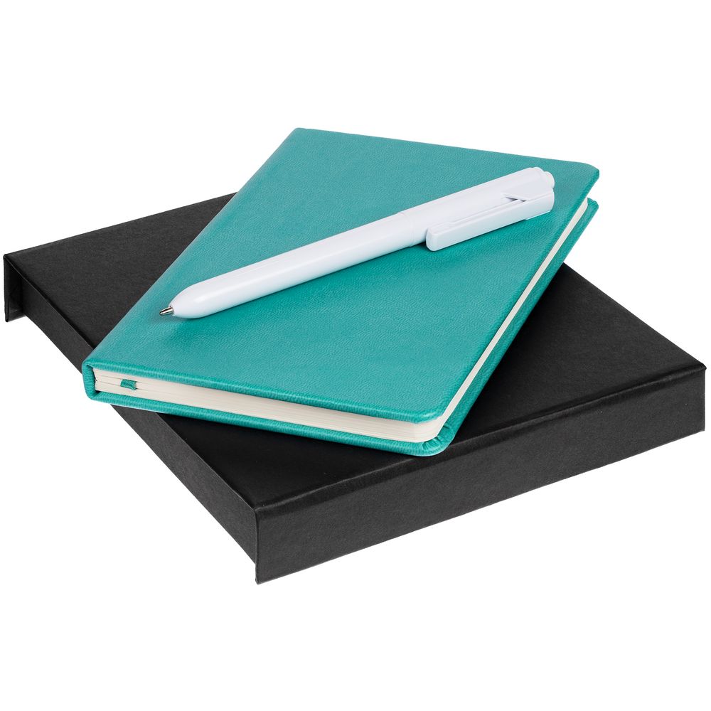 блокнот - искусственная кожа, искусственная кожа, коробка - переплетный картон, переплетный картон, пластик, ручка - пластик
