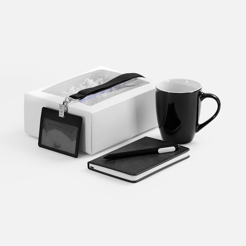 Лаконичный приветственный набор Hop In содержит все самое необходимое для успешной и быстрой адаптации нового сотрудника в команде. Это основные офисные принадлежности — блокнот и ручка — для подробной записи идей и планов; чехол для пропуска на ленте — для безопасности и идентификации; компактная кружка — для приятного перерыва в компании с новыми коллегами.