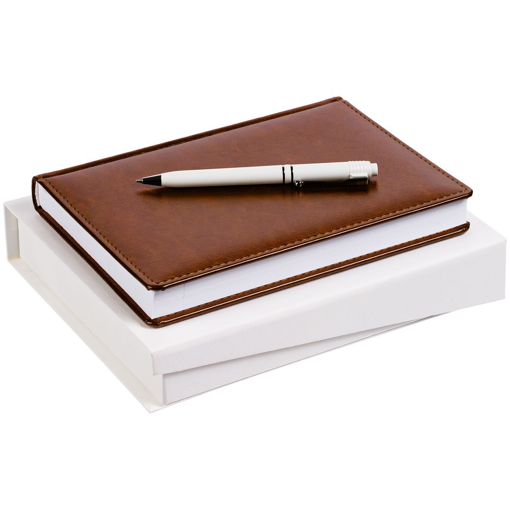 Две самые классические модели в одном деловом наборе: ежедневник Nebraska с «пухлой» обложкой и ручка Raja — кажется, они никогда не выйдут из моды.
