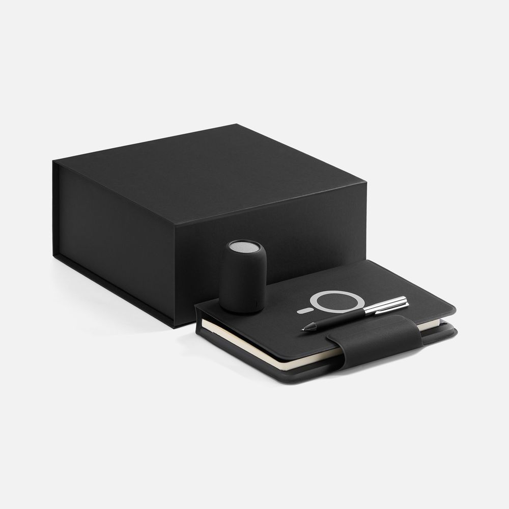 Oiro — премиальный подарочный набор для самых взыскательных пользователей, символ безупречного вкуса и практичности. Минималистичный стиль набора и его наполнение гармонично сочетают в себе классику и современность, технологичность и элегантность. Особое внимание уделено тактильным ощущениям: каждый предмет набора Oiro приятно держать в руках благодаря особенной, словно тканевой, фактуре.