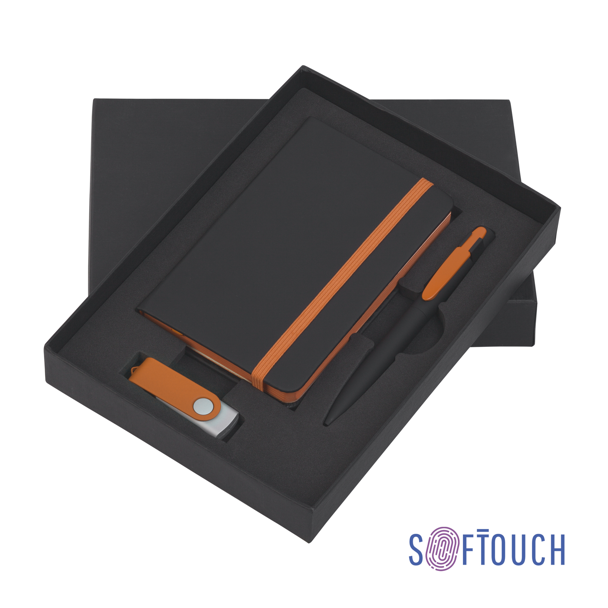 Подарочный набор "Андрия", покрытие soft touch, черный с оранжевым