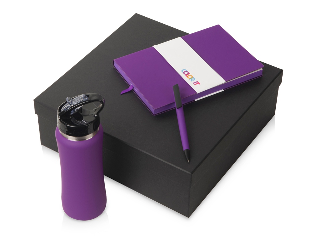 Подарочный набор c блокнотом C1, ручкой и бутылкой, фиолетовый