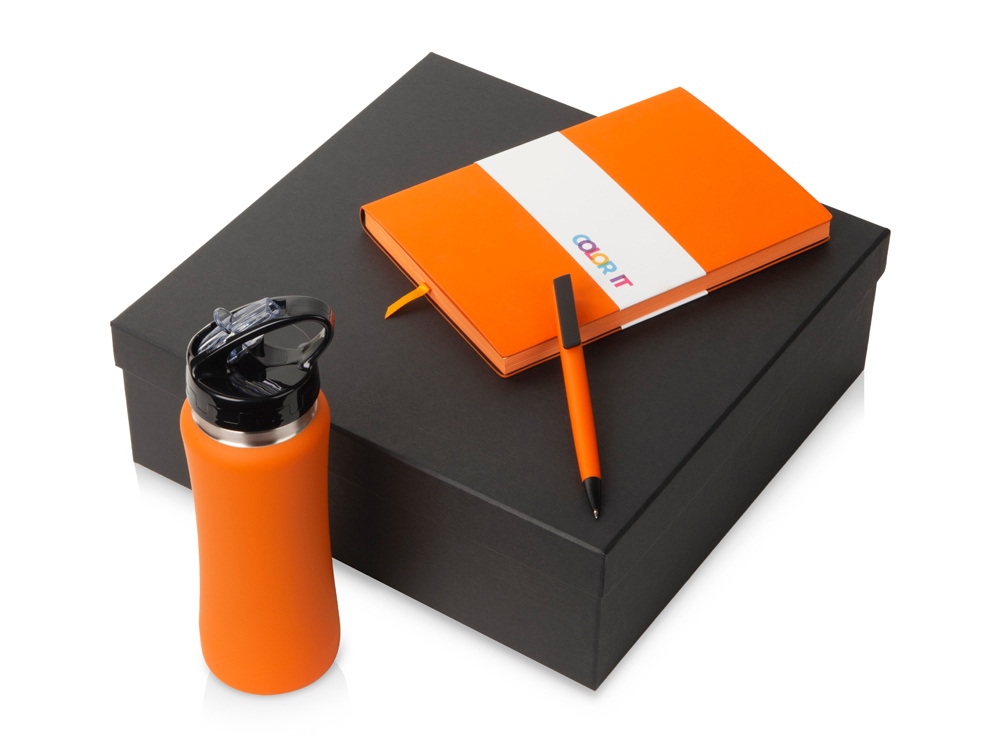 Подарочный набор c блокнотом C1, ручкой и бутылкой, оранжевый