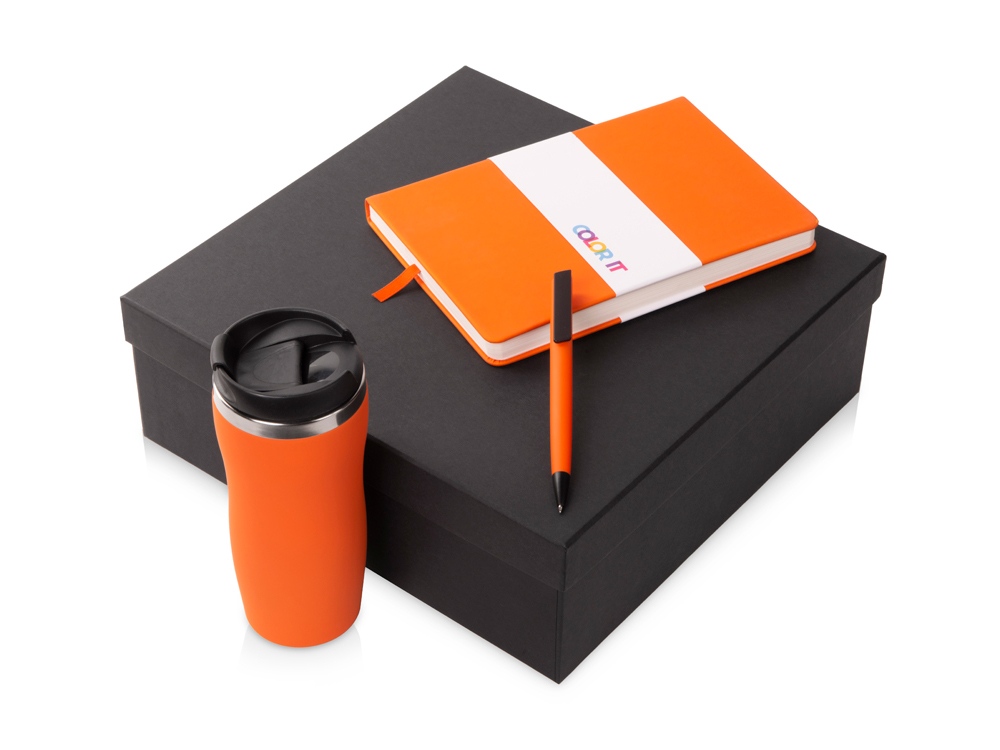 Подарочный набор c блокнотом С3, ручкой и термокружкой Mony Steel, оранжевый