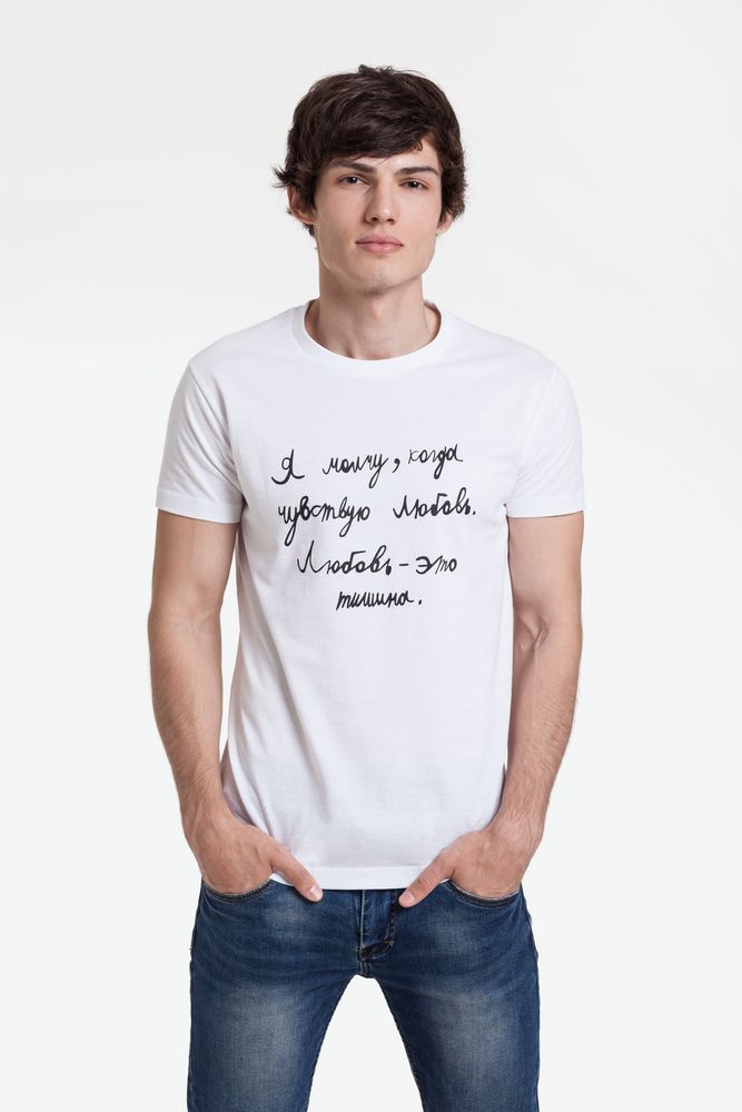 Футболка мужская приталенная «Любовь — тишина» — пример нанесения логотипа (Соль) | Print Logo