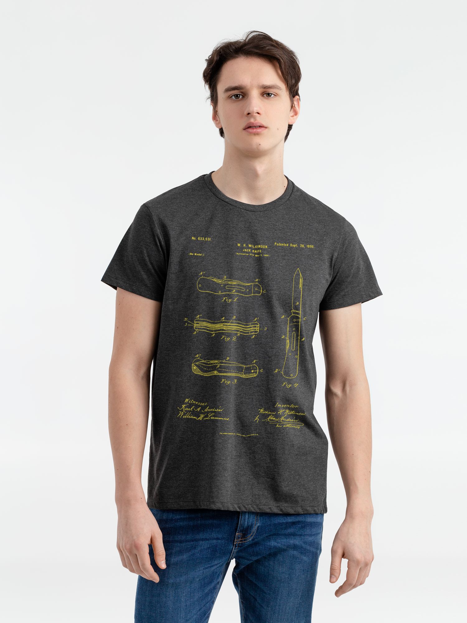 Модель : Футболка приталенная Old Patents. Knife, черный меланж