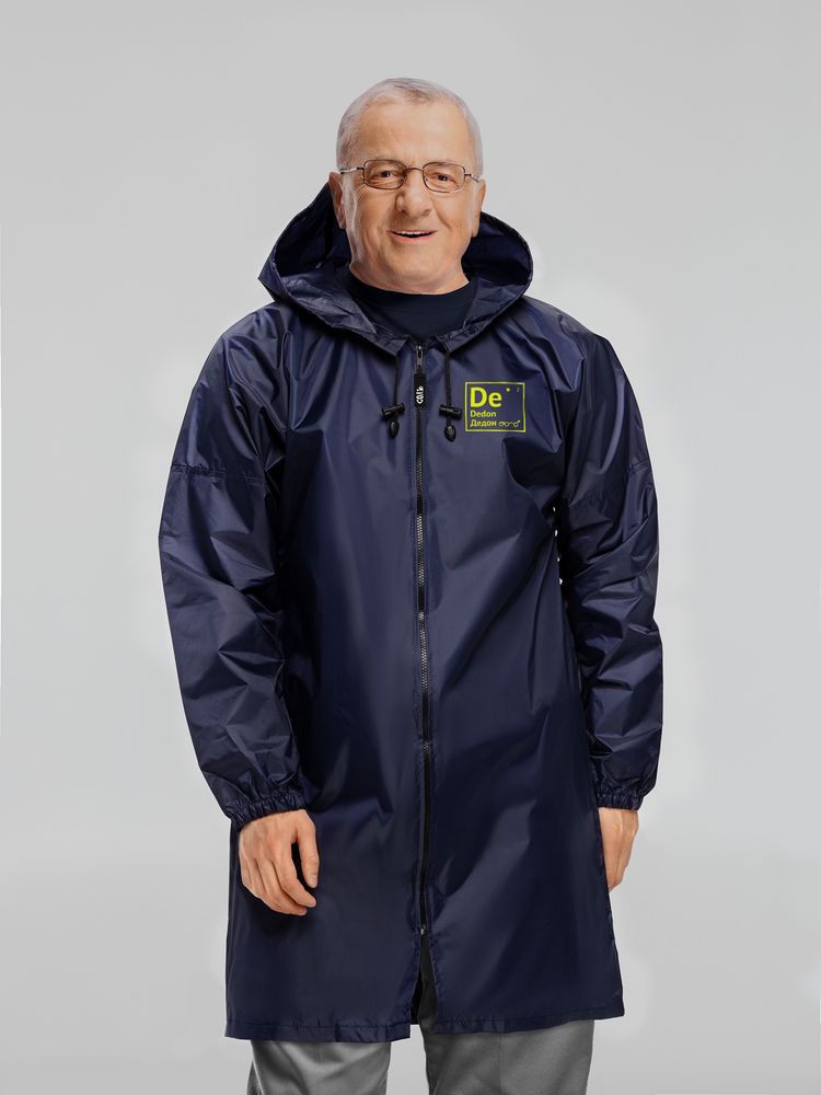 Плащ-дождевик из ткани таффета на молнии с капюшоном. Складывается в мешочек — удобно брать с собой.