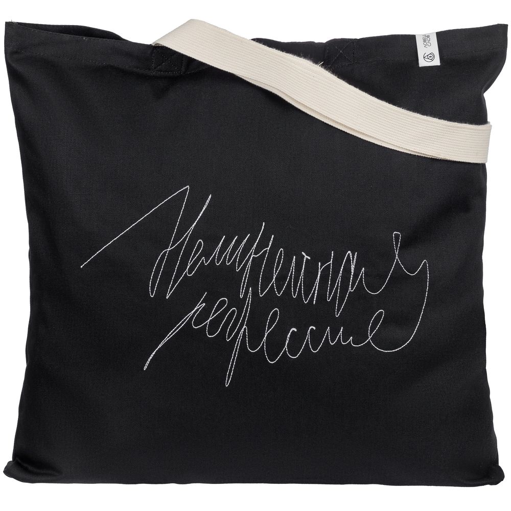 Черный хлопковый шоппер с вкраплением красной нити как олицетворение фокуса на главной цели. Сколько бы ни было вокруг препятствий и соблазнов, с этой сумкой есть все шансы победоносно пересечь тонкую красную линию финиша!Выдерживает нагрузку до 15 кг.