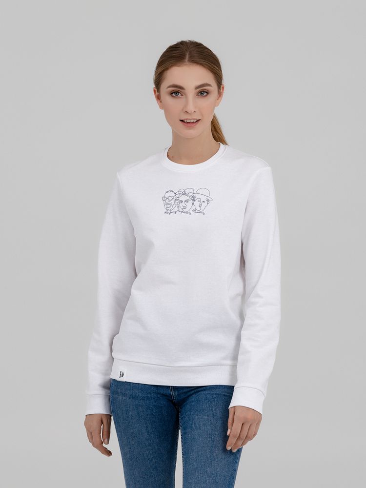 «Ничего не вижу, ничего не слышу, ничего никому не скажу». Аллюзия на культурный феномен представлена вышивкой с портретами трех великих авторов. Музыкант Рей Чарльз был лишен зрения, композитор Людвиг Ван Бетховен — слуха, а актер и режиссер Чарли Чаплин создавал немое кино. Никакие ограничения не могут помешать талантливому человеку доносить свои идеи и создавать прекрасное.Классический кроеный свитшот унисекс. Манжеты, ворот и низ изделия отделаны резинкой. Внутренняя сторона без начеса.