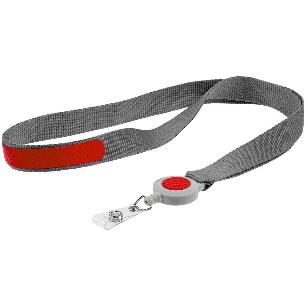 Модель : Лента для бейджа с ретрактором Devon, серая с красным