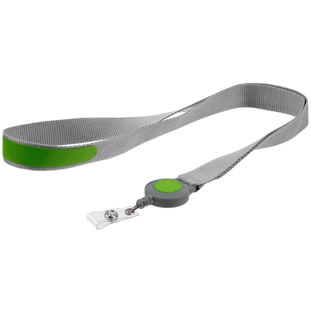 Модель : Лента для бейджа с ретрактором Devon, серая с зеленым