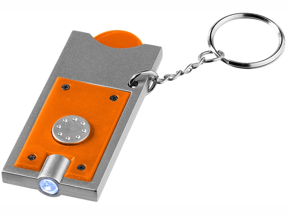 Брелок-держатель для монет Allegro с фонариком, оранжевый/серебристый