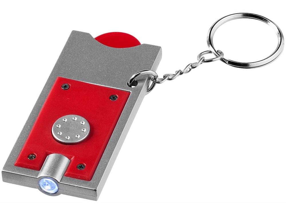 Брелок-держатель для монет Allegro с фонариком, красный/серебристый