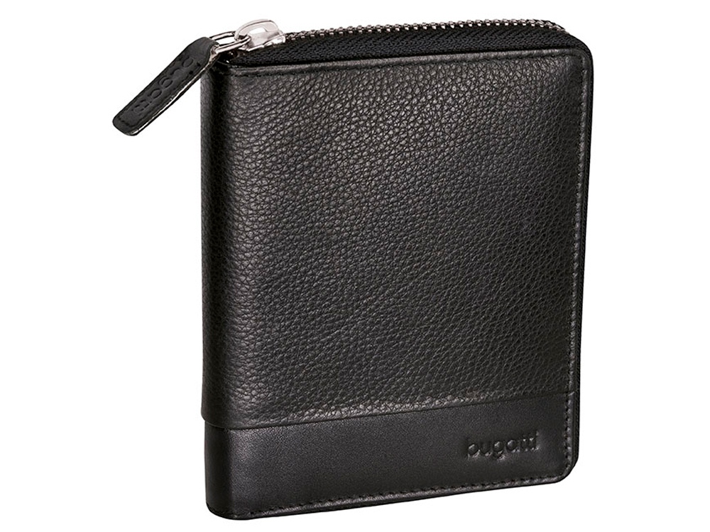 Кошелек BUGATTI Atlanta, на молнии, чёрный, натуральная воловья кожа, 10,5х2х13 см
