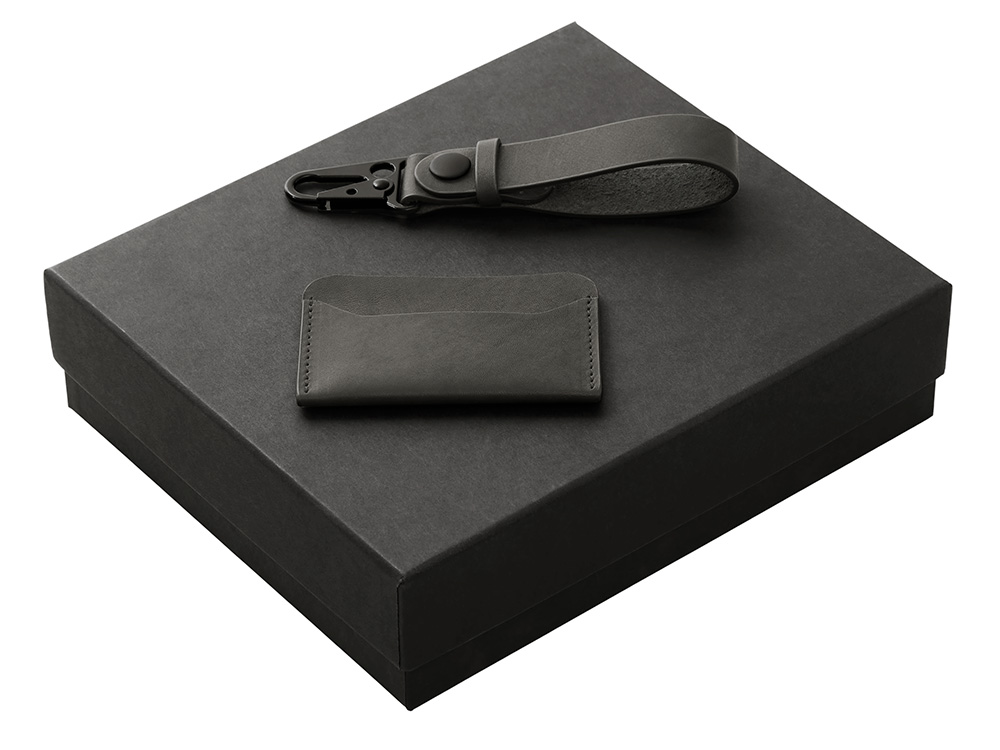 Подарочный набор Long River: картхолдер, ремешок для ключей (без лого Long River), черная коробка
