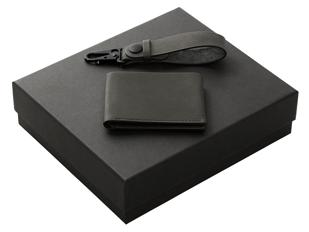 Подарочный набор Long River: кошелек, ремешок для ключей (без лого Long River), черная коробка