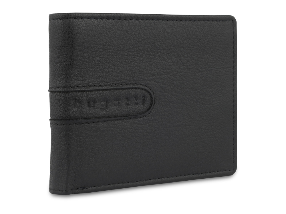 Портмоне BUGATTI Bomba, с защитой данных RFID, чёрное, кожа/полиэстер, 12х2х9,5 см
