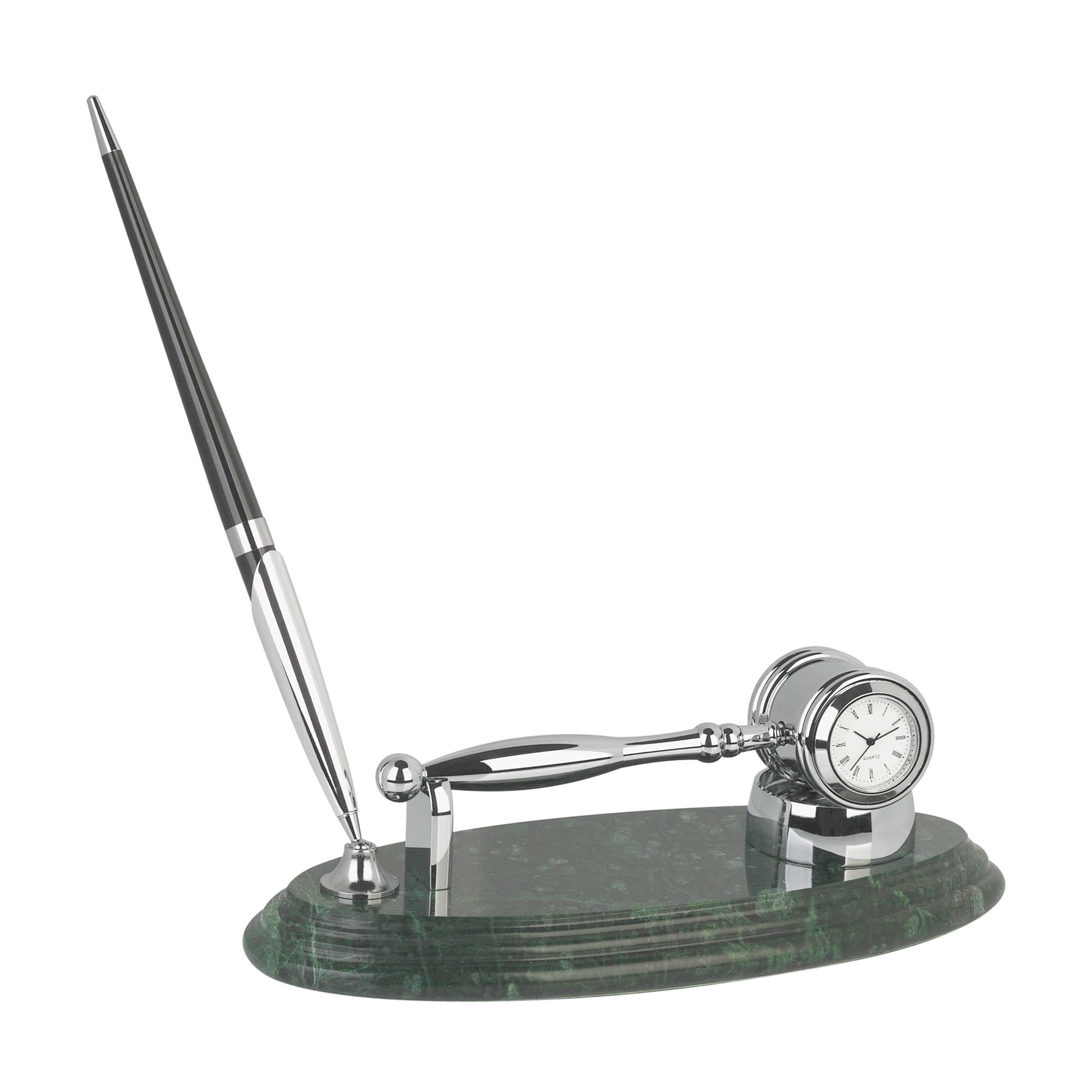 Подставка "Правосудие" с часами и ручкой, серебристый с зеленым