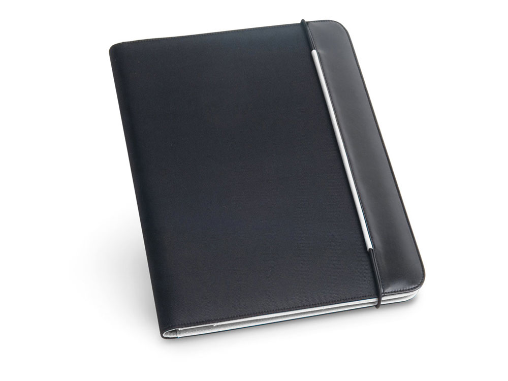 Папка формата А4 из искусственной кожи и 800D с внутренней стороной из микрофибры. В папке есть резинка для закрытия, а внутри - блок из 20 листов в линейку, 3 кармана и держатель для шариковой ручки (ручка не входит в комплект). 245 x 315 x 15 мм. Вид нанесения, рекомендуемый поставщиком: трансфер.