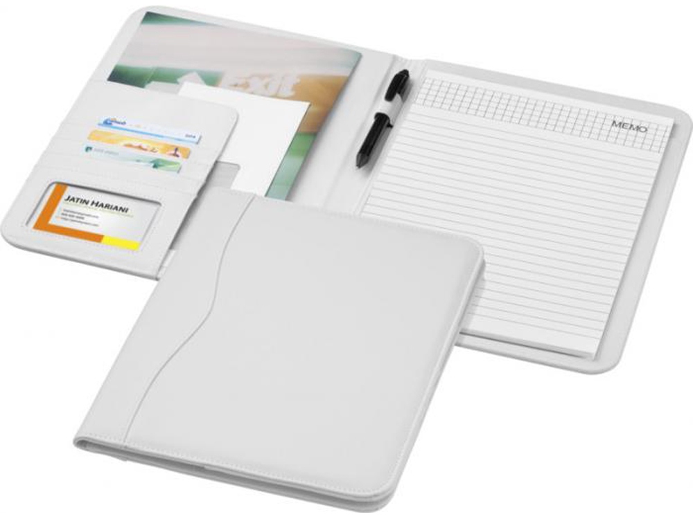 Папка с держателем для ручки, карманами для документов и блокнотом А4 с 20 страницами линованной бумаги. Ручка и принадлежности не включены.