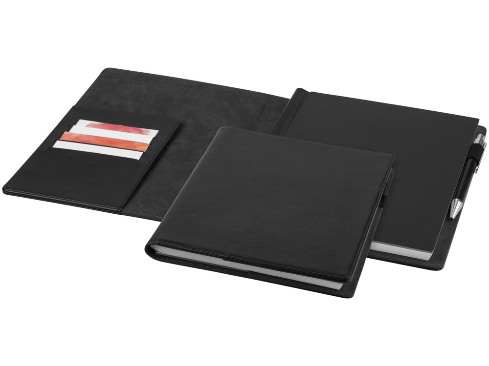 Папка Arun. Папка с держателем для ручки и панелью органайзером внутри слева. В комплекте блокнот из 94 линованных страниц. Упакована в коробку Avenue. Кожзаменитель.