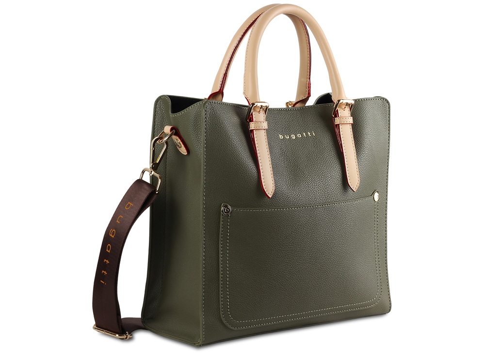 Сумка-портфель женская BUGATTI Ella, оливковая, полиуретан, 30х11,5х28 см