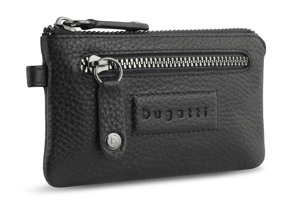 Ключница BUGATTI Elsa, чёрная, воловья кожа/полиэстер, 12,5х0,5х7 см
