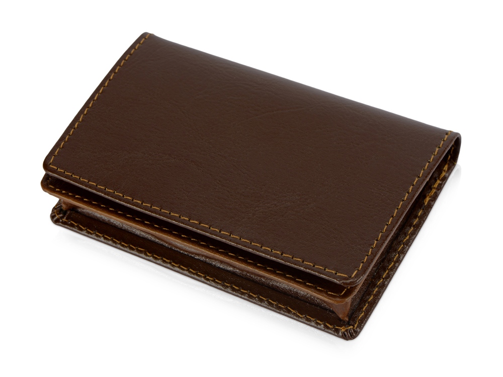 Визитница на магните выполнена из металла с искусственной кожей снаружи и черном бархатом внутри.