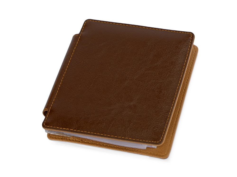 Визитница на магните выполнена из металла с искусственной кожей снаружи и черном бархатом внутри.