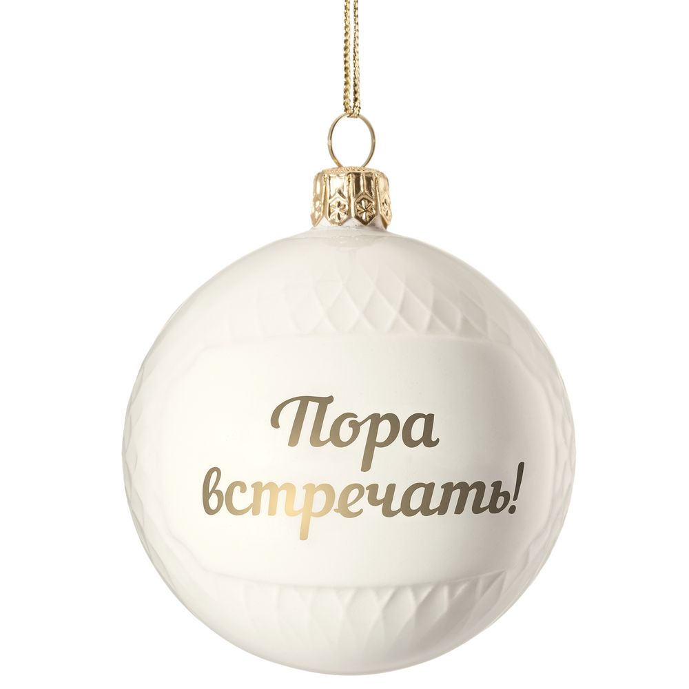 Фарфоровый молочный шар с рельефным узором и запоминающейся надписью дополнит коллекцию символичных елочных игрушек и сохранит память о его дарителе и самом волшебном празднике в году.