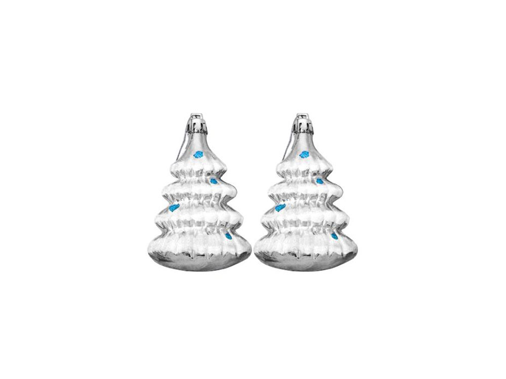 Новогоднее подвесное украшение Ёлочки в серебре из полистирола, набор из 2 шт / 8,6x5,8x3,2см