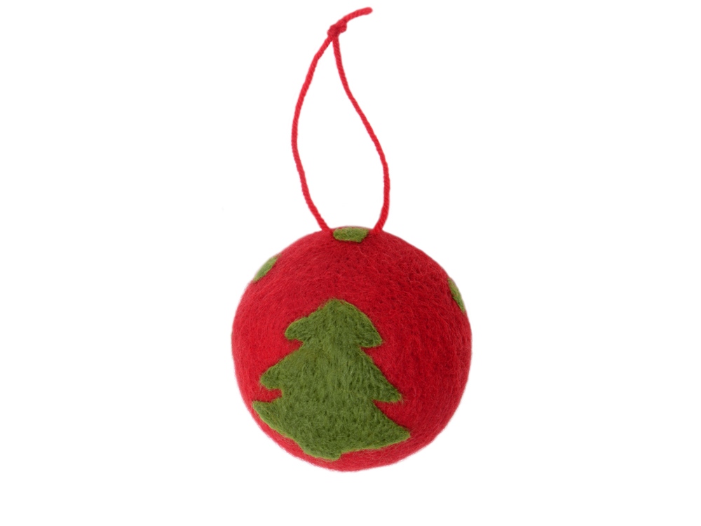 Яркий новогодний шар сочного красного цвета можно использовать в качестве елочной игрушки. Новогодний шар выполнен из войлока.