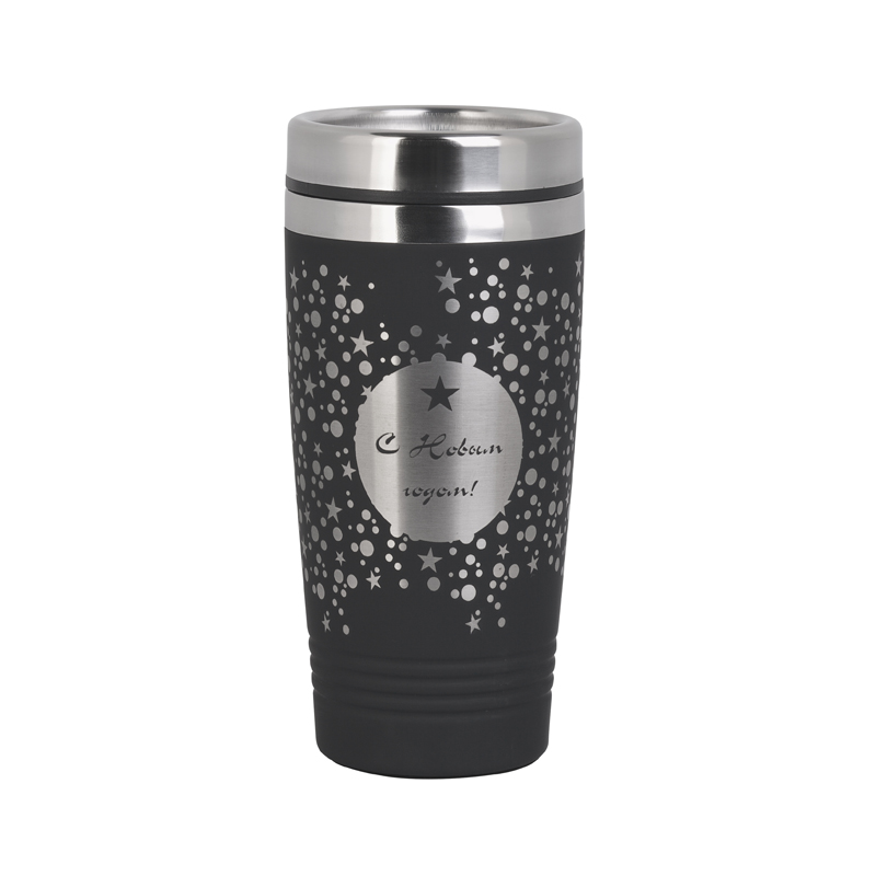 Термостакан "Азия" с прорезиненной поверхностью c гравировкой " С Новым Годом" — пример нанесения логотипа () | Print Logo