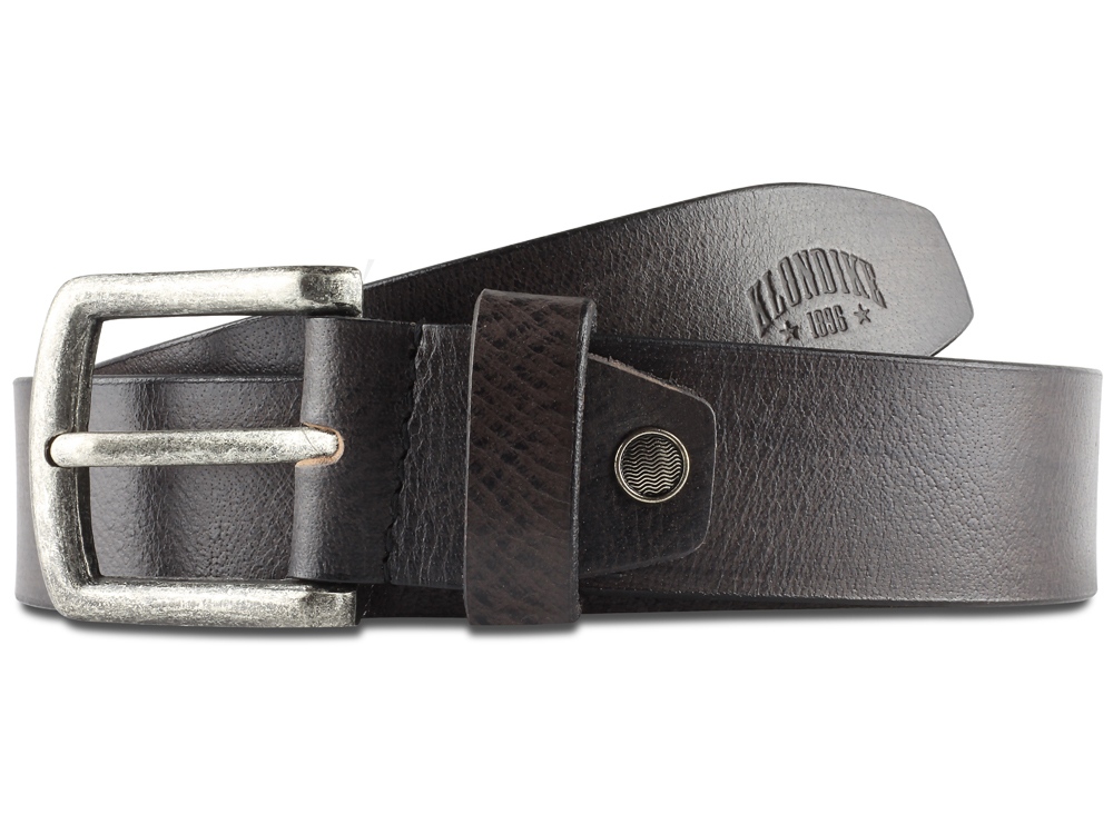 Ремни Klondike Creek изготовлены вручную из натуральной воловьей кожи, долговечной и устойчивой к износу. Металлическая серебристая пряжка в винтажном стиле и элегантное тиснение логотипа придают ремню оригинальность.