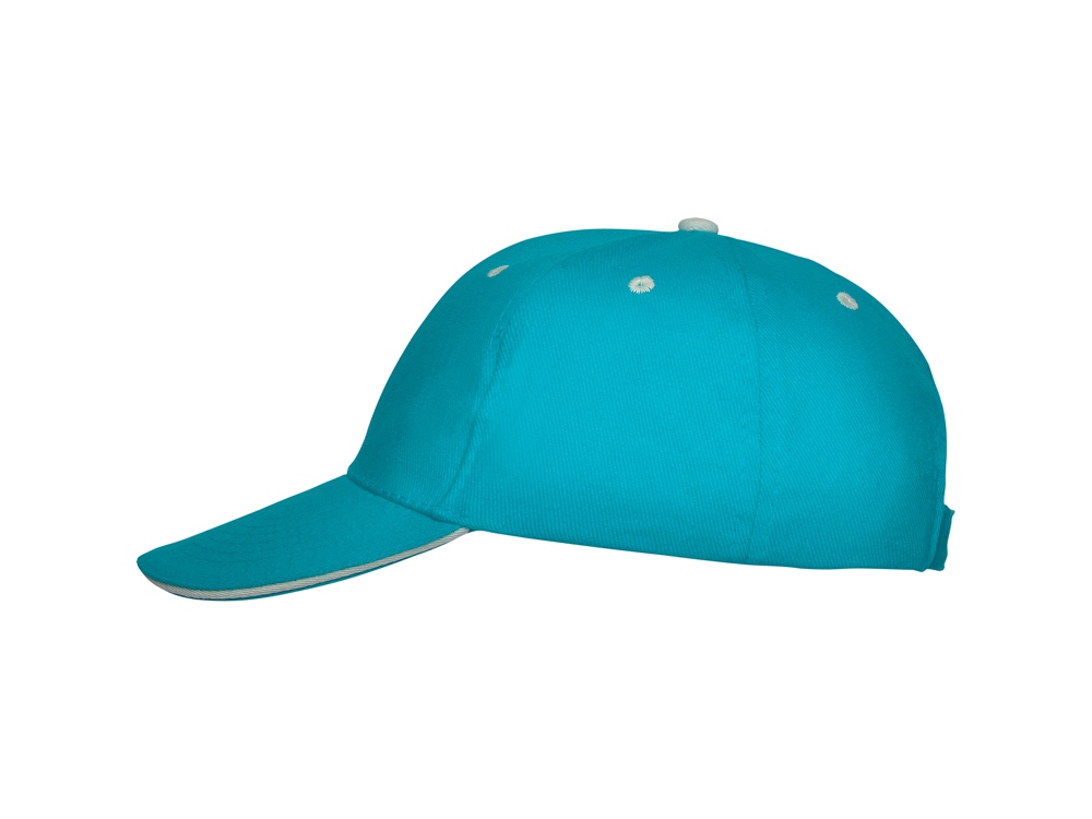 6-панельная бейсболка - сэндвич с контрастными вышитыми люверсами. Застежка на липучку.