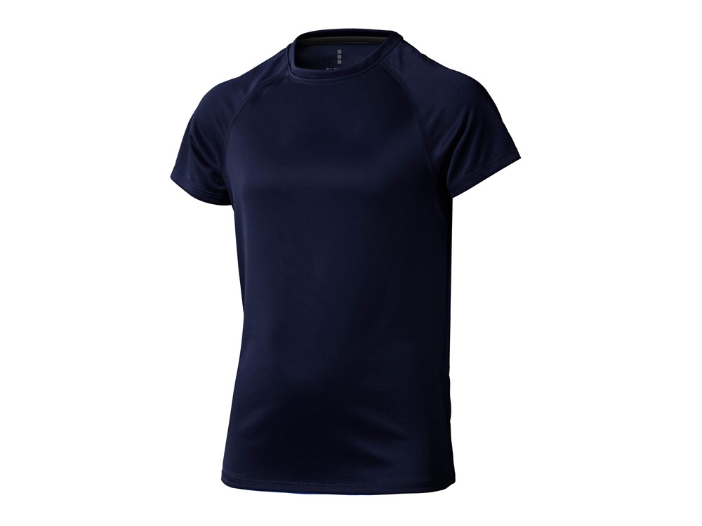 Детская футболка Niagara. Стандартный покрой. Отражающий лого сзади. Cool Fit. Тонкий шов на рукавах реглан. Небольшой двойной шов на рукаве и внизу на кромке. Атласная лента внутри горловины. Сетчатый материал, 100% полиэстер с дышащей поверхностью. 145 г/м². Трафаретная печать (1 цвет (цветные изделия)) на данный товар осуществляется бесплатно. Оплачивается только настройка оборудования в размере 8200 рублей на весь тираж.