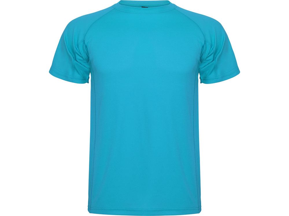 Спортивная детская футболка с коротким рукавом реглан. Круглый вырез горловины и боковая вставка с отстрочкой плоским швом.