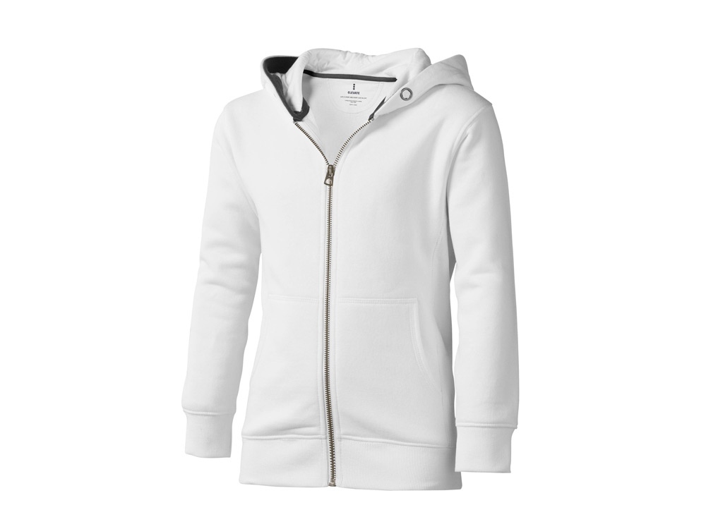 Детский свитер Arora с капюшоном и застежкой-молнией на всю длину. Стандартный покрой. Резинка 2х2 на боковых вставках, поясе и манжетах. Карман кенгуру. Подкладка внутри капюшона. Атласная лента внутри горловины. Принт лого сзади в тон изделия. Серебристые люверсы с лого. Ворсистый внутри для мягкости, тепла и комфорта. Трикотаж: 82% хлопок, 10% вискоза и 8% полиэстер, чесаная внутренняя сторона. 300 г/м². Трафаретная печать (1 цвет (цветные изделия)) на данный товар осуществляется бесплатно. Оплачивается только настройка оборудования в размере 8200 рублей на весь тираж.